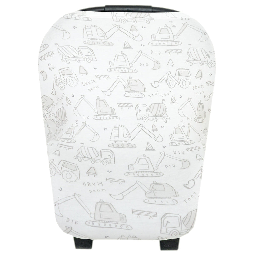 Stretchy fabric fits most all car seats, shopping carts, high chairs and nursing mothers. It can also be a trendy infinity scarf! The green fabric with letters is gender neutral and trendy