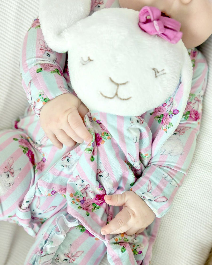 Our bamboo lovey is a must-have! Attached to a removable beechwood teething ring your little one will fall in love with. In our signature bamboo fabric, the lovey is incredibly soft and luxuriously silky. Match back to your favorite Lev Baby outfit and your babe is all set!