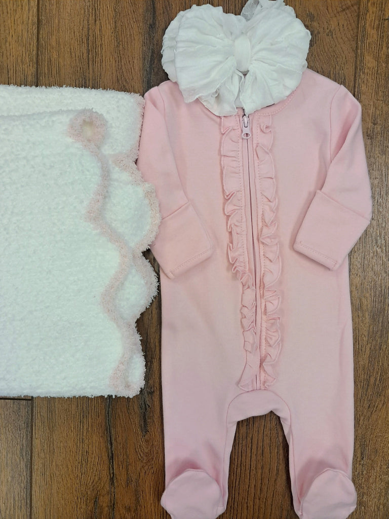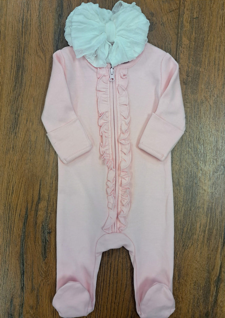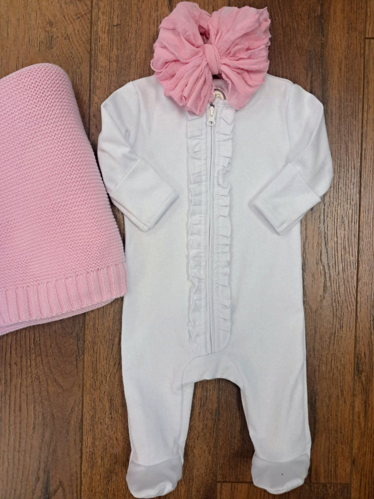 Our Blank NB Ruffle Zipper Sleeper is made of soft, 100% combed knit interlock cotton and is a perfect baby basic!