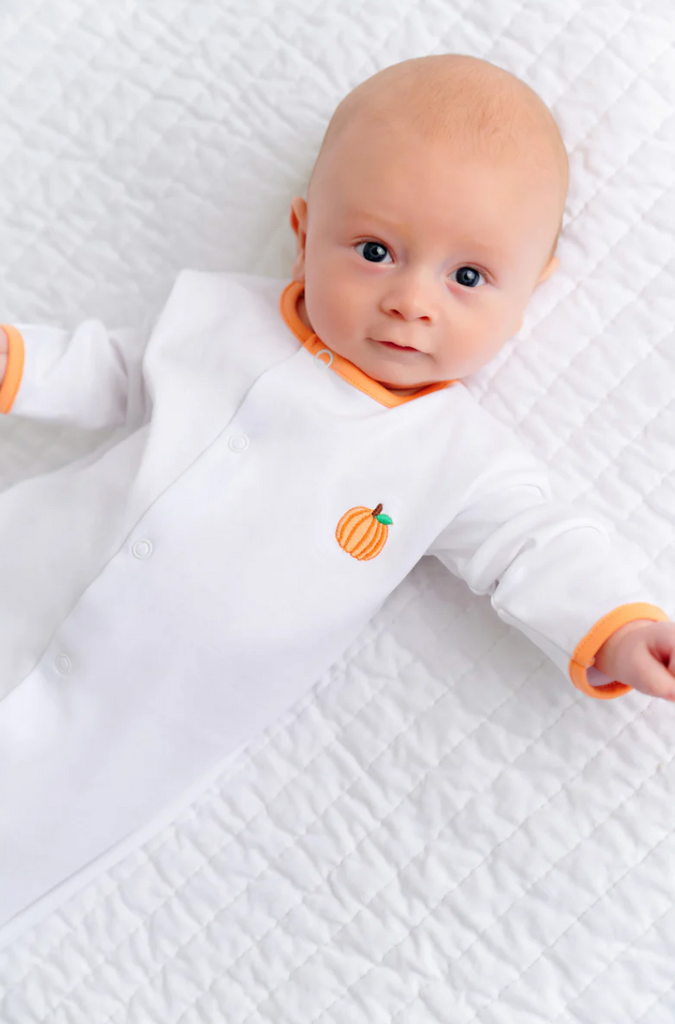 Drift off to dreamland in sweet seasonal style with our Twinkle Twinkle 2 in 1! Featuring Worth Avenue White with Seashore Sherbet Pumpkin Embroidery. This cozy pajama onesie is perfect for adding a dash of festive fun to your little one’s bedtime routine!