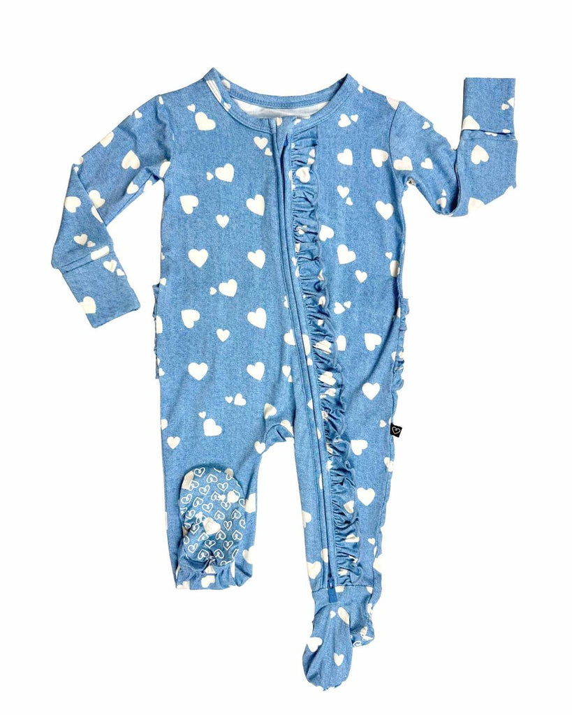 Denim Hearts Ruffled Footies