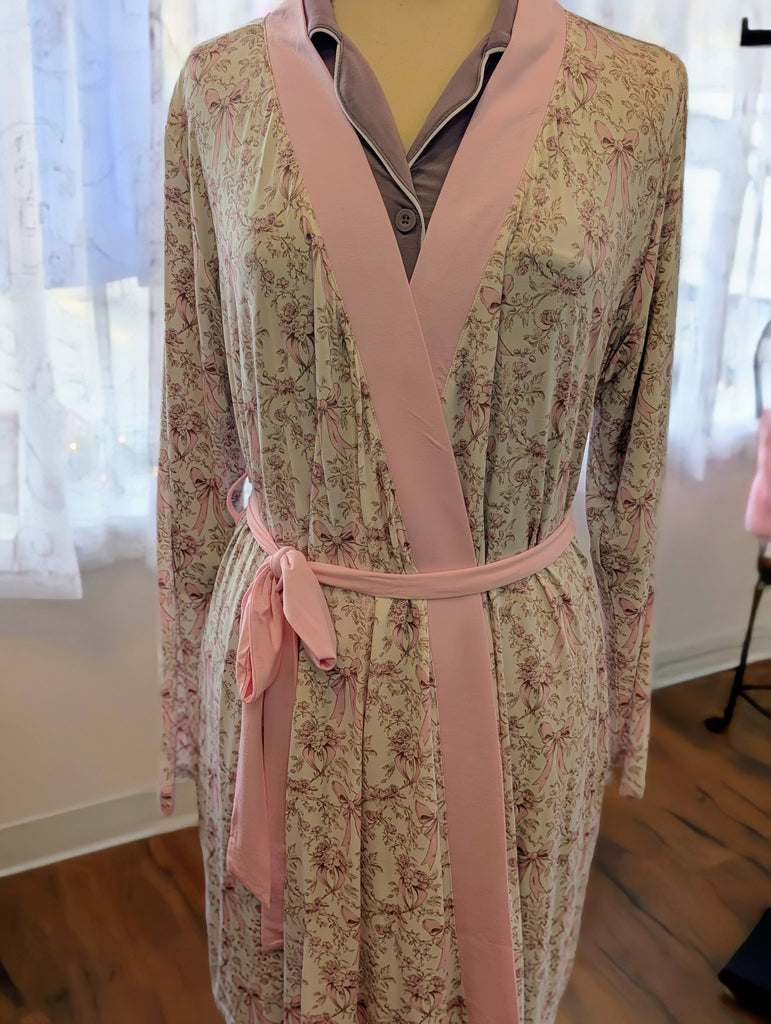 Etta women's robe in bamboo with tie at waist.
