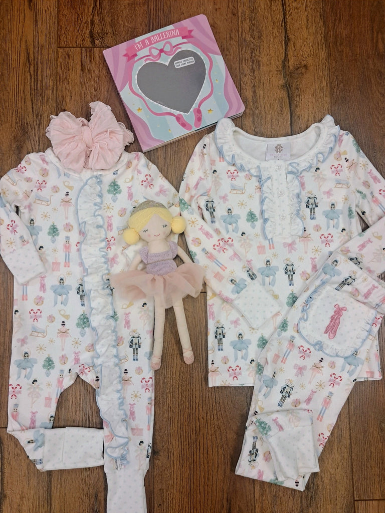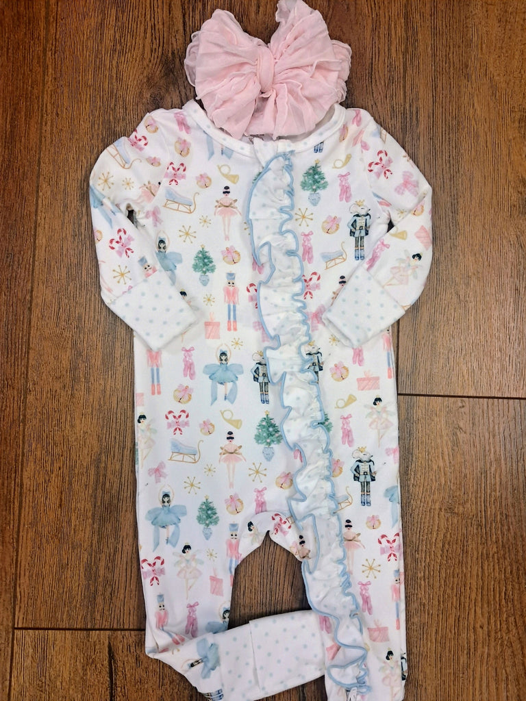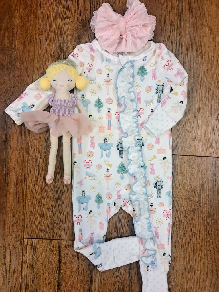 Buttery soft material with a nutcracker design, cute ruffle down the front, and of course zipper closure.