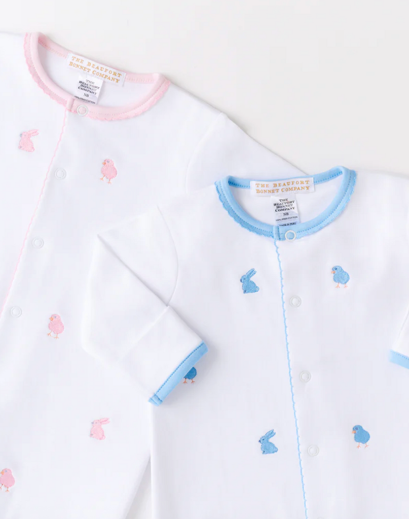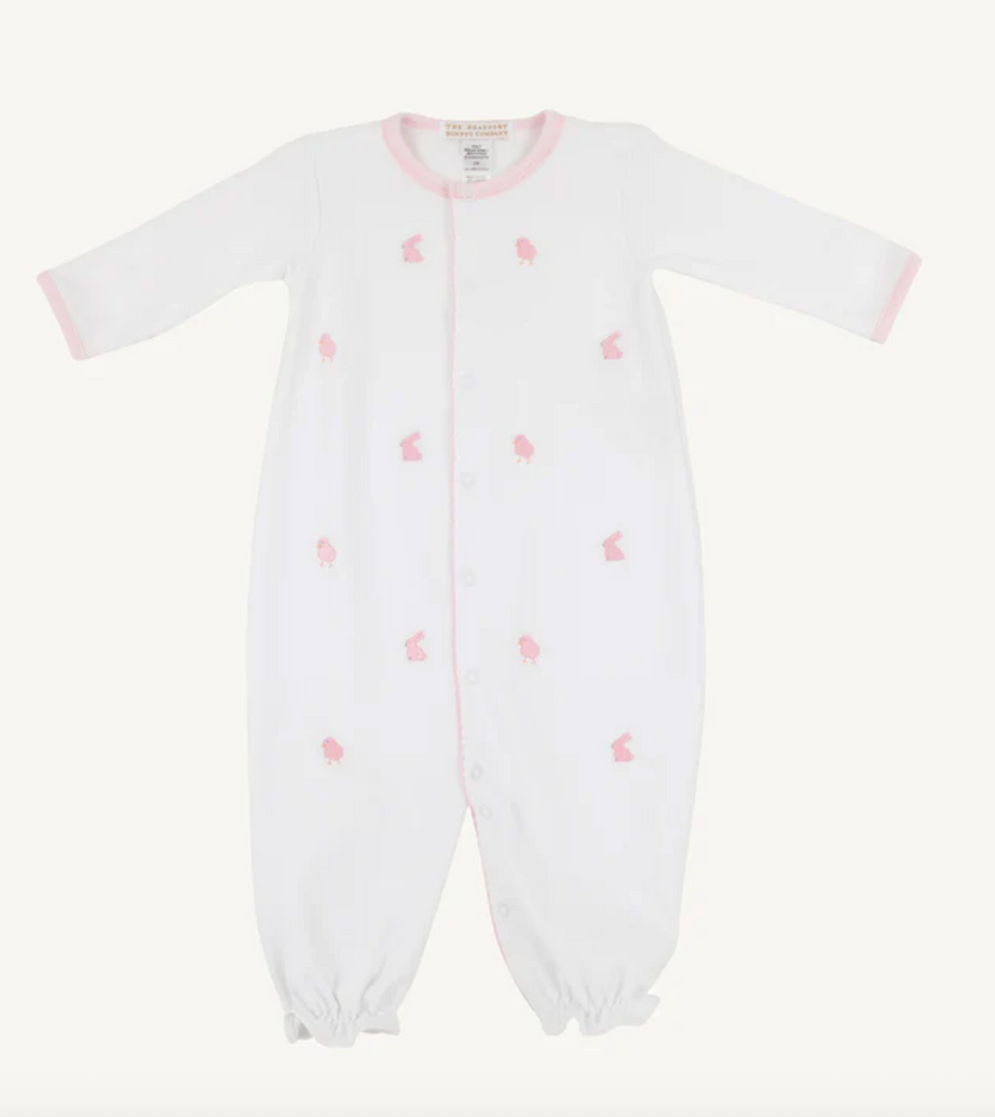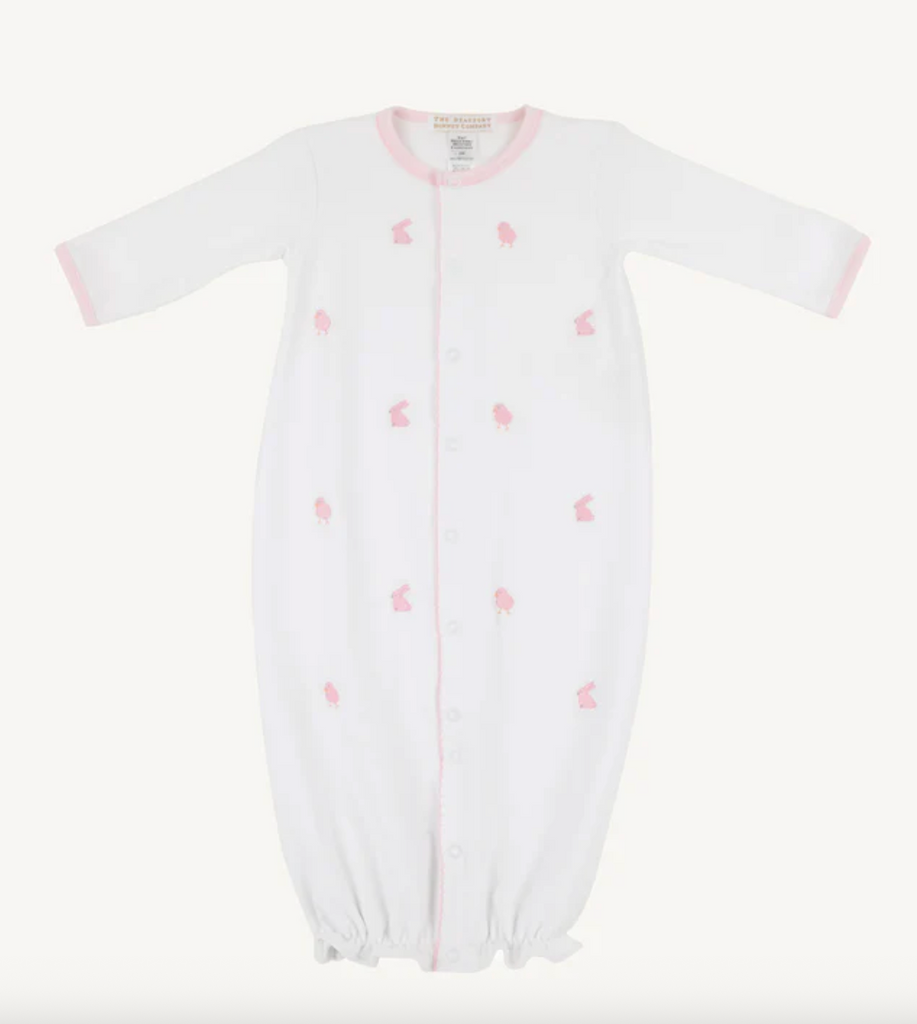 Give your newborn the gift of versatility with our Twinkle Twinkle 2-in-1 Gown in Worth Avenue White with Beale Street Blue Bunnies & Chicks, crafted from Pima Cotton for ultimate comfort. This convertible design transforms from a gown for quick daytime diaper changes to a cozy romper that keeps little legs warm. Size NB with plenty of room.