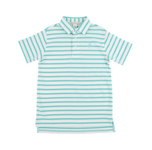 Prim and Proper Polo SS-Pima Turks teal stripe edisto egg blue